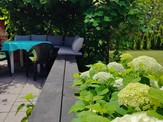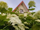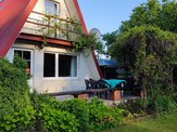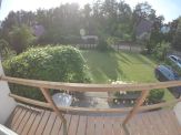 Budynek posiada taras słoneczny oraz niewielki balkonik z widokiem na ogród, a przy sprzyjających